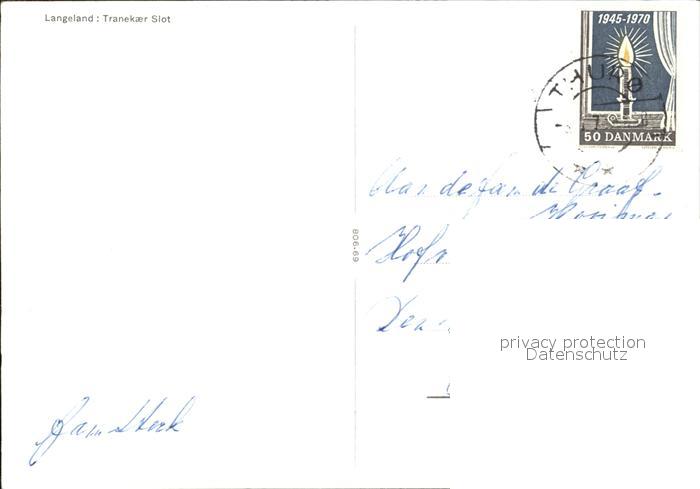 old postcard Langeland Daenemark Tranekaer Slot postalisch gelaufen Erhaltung siehe scans