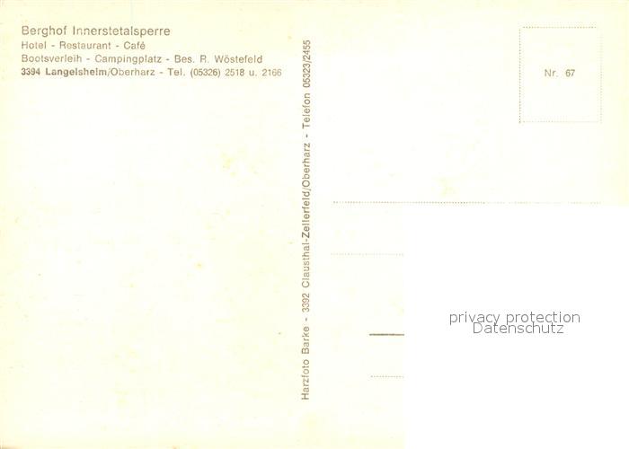 73312069 Langelsheim Berghof Innerstetalsperre postalisch nicht gelaufen Erhaltung siehe scans [NatalD47] KatCode: 11110003153007