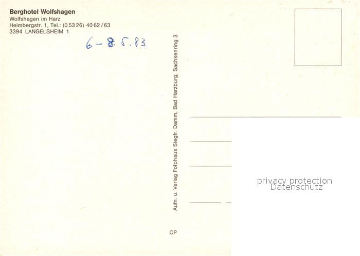73333096 Langelsheim Berghotel Wolfshagen postalisch nicht gelaufen Erhaltung siehe scans [LiesaD40] KatCode: 11110003153007