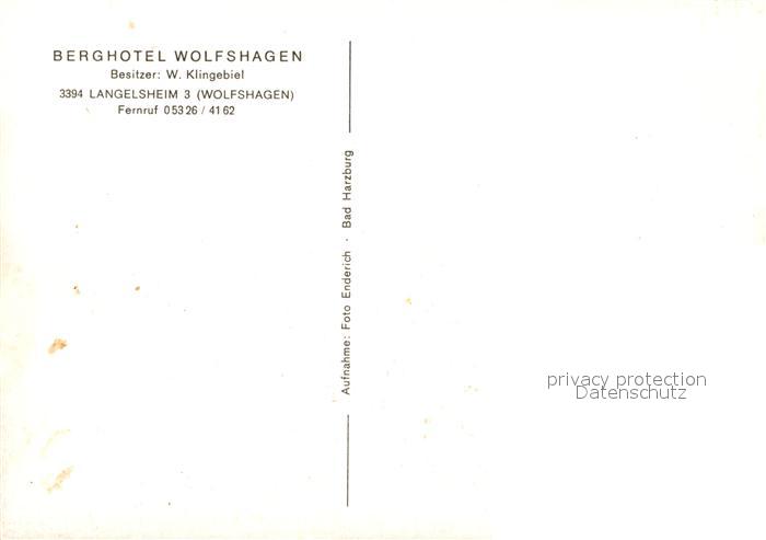 73105519 Langelsheim Berghotel Wolfshagen postalisch nicht gelaufen Erhaltung siehe scans [WerneD78] KatCode: 11110003153007