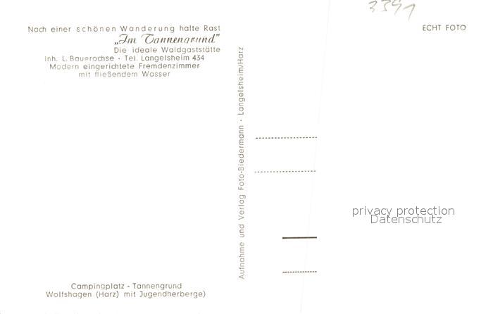 43351404 Langelsheim Gasthaus Tannengrund Campingplatz postalisch nicht gelaufen Erhaltung siehe scans [KathaD81] KatCode: 11110003153007