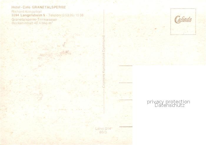 72944008 Langelsheim Granetalsperre Hotel Cafe postalisch nicht gelaufen Erhaltung siehe scans [KathaD81] KatCode: 11110003153007