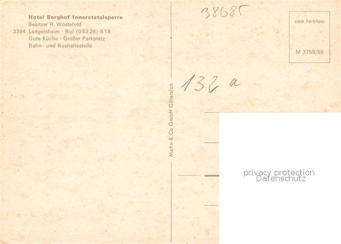 73867188 Langelsheim Hotel Berghof Innerstetalsperre Restaurant postalisch nicht gelaufen Erhaltung siehe scans [FriedD77] KatCode: 11110003153007
