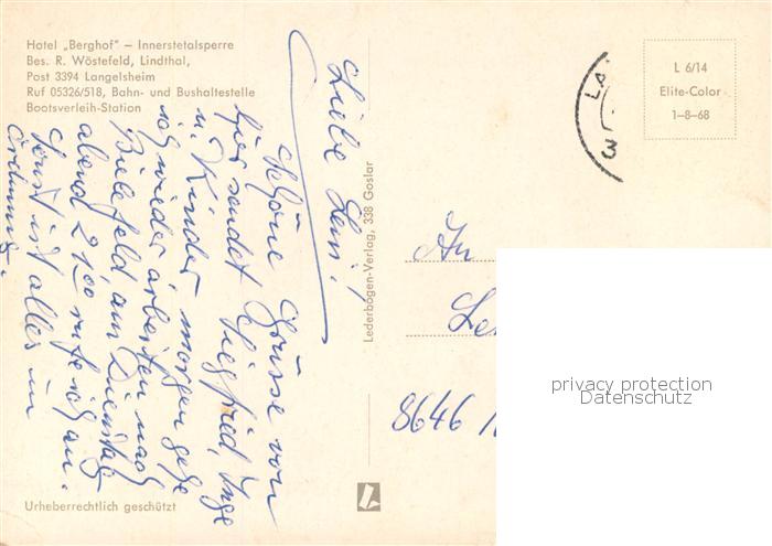 73785684 alte Postkarte Langelsheim Hotel Berghof Innerstetalsperre Terrasse postalisch gelaufen Erhaltung siehe scans [WerneD78] KatCode: 11110003153007