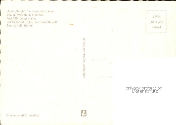 72591572 Langelsheim Hotel Berghof Terrasse mit Innerstetalsperre postalisch nicht gelaufen Erhaltung siehe scans [WerneD78] KatCode: 11110003153007