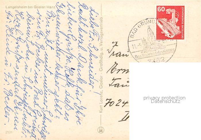 73840449 alte Postkarte Langelsheim Neue Schule Rathaus Ehrenmal Schwimmbad postalisch gelaufen Erhaltung siehe scans [WerneD78] KatCode: 11110003153007