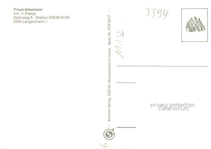 73742478 Langelsheim Privat Altenheim Preiss Zimmer Garten Veranda TV Zimmer postalisch nicht gelaufen Erhaltung siehe scans [WerneD78] KatCode: 11110003153007