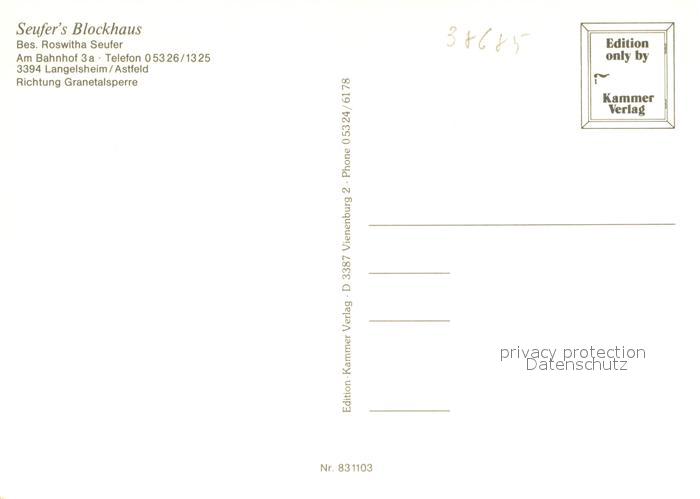 73722852 Langelsheim Seufers Blockhaus postalisch nicht gelaufen Erhaltung siehe scans [LiesaD40] KatCode: 11110003153007