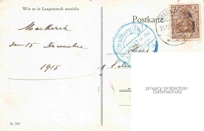 74006662 carte postale Langemark Langemarck Poelkapelle West-Vlaanderen Belgie Zerstoertes Dorf in WK1 postalisch gelaufen Erhaltung siehe scans [FriedD77] KatCode: 11070033002082