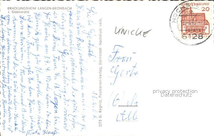 72098617 alte Postkarte Langen Brombach Erholungsheim postalisch gelaufen Erhaltung siehe scans KatCode: 11110006437005
