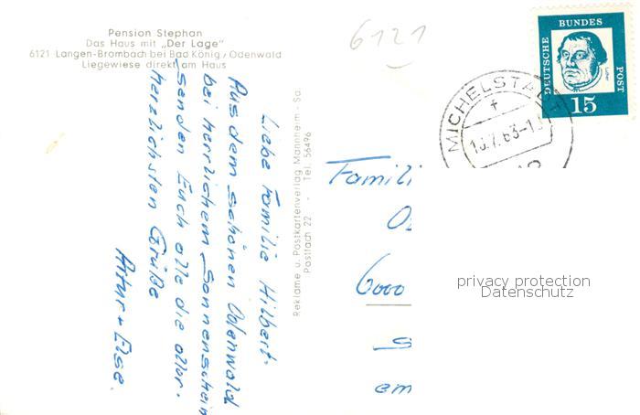 73792368 alte Postkarte Langen Brombach Pension Stephan Aussenansicht m. Terrasse postalisch gelaufen Erhaltung siehe scans [LiesaD40] KatCode: 11110006437005
