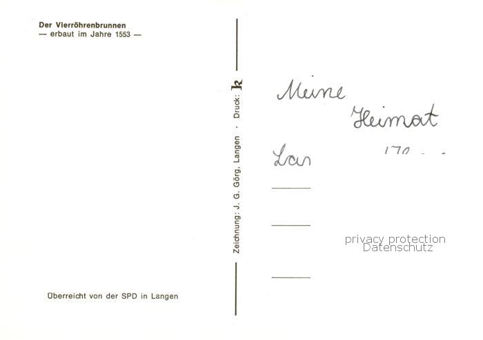 73826242 Langen Hessen Der Vierroehrenbrunnen Zeichnung postalisch nicht gelaufen Erhaltung siehe scans [WerneD78] KatCode: 11110006438006