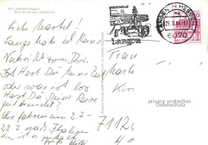 74138816 alte Postkarte Langen Hessen Ev Stadtkirche postalisch gelaufen Erhaltung siehe scans [FriedD77] KatCode: 11110006438006