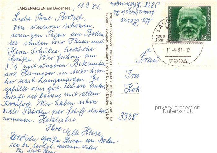 72687303 alte Postkarte Langenargen Bodensee Alpenblick Fliegeraufnahme postalisch gelaufen Erhaltung siehe scans [FriedD77] KatCode: 11110008435030