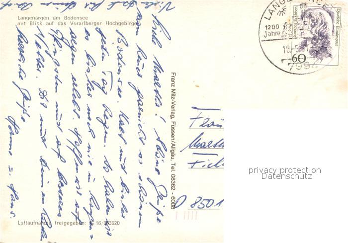 73701618 alte Postkarte Langenargen Bodensee Fliegeraufnahme postalisch gelaufen Erhaltung siehe scans [WerneD78] KatCode: 11110008435030