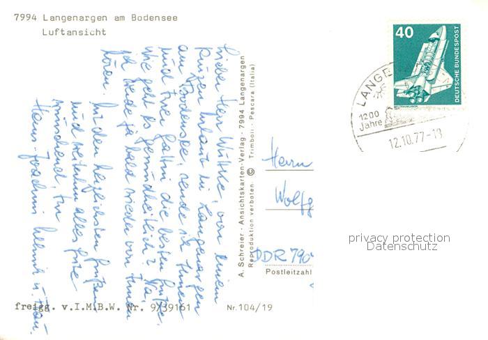 73647362 alte Postkarte Langenargen Bodensee Fliegeraufnahme postalisch gelaufen Erhaltung siehe scans [WerneD78] KatCode: 11110008435030
