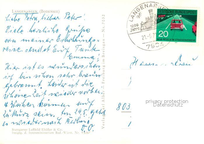73088656 alte Postkarte Langenargen Bodensee Fliegeraufnahme postalisch gelaufen Erhaltung siehe scans [NatalD47] KatCode: 11110008435030