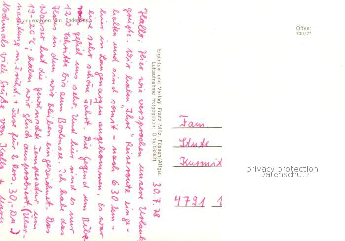 72959774 Langenargen Bodensee Fliegeraufnahme postalisch nicht gelaufen Erhaltung siehe scans [WerneD78] KatCode: 11110008435030