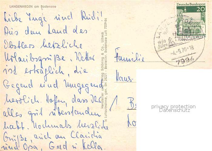 72787448 alte Postkarte Langenargen Bodensee Fliegeraufnahme postalisch gelaufen Erhaltung siehe scans [WerneD78] KatCode: 11110008435030