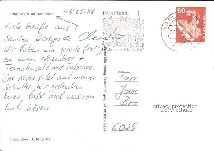 72572556 alte Postkarte Langenargen Bodensee Fliegeraufnahme postalisch gelaufen Erhaltung siehe scans [LiesaD40] KatCode: 11110008435030
