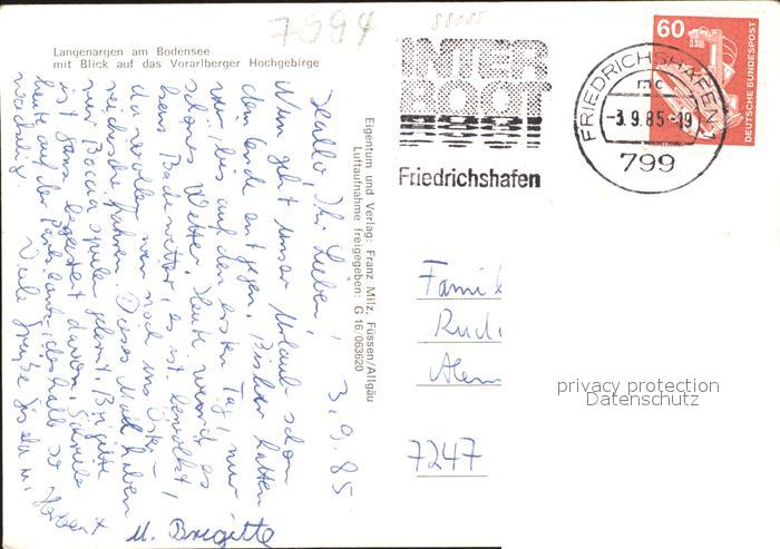 71900155 alte Postkarte Langenargen Bodensee Fliegeraufnahme postalisch gelaufen Erhaltung siehe scans KatCode: 11110008435030