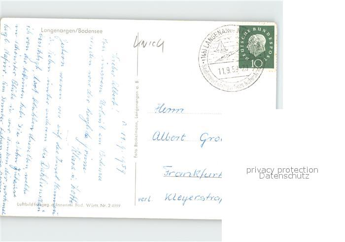 32185840 alte Postkarte Langenargen Bodensee Fliegeraufnahme postalisch gelaufen Erhaltung siehe scans KatCode: 11110008435030