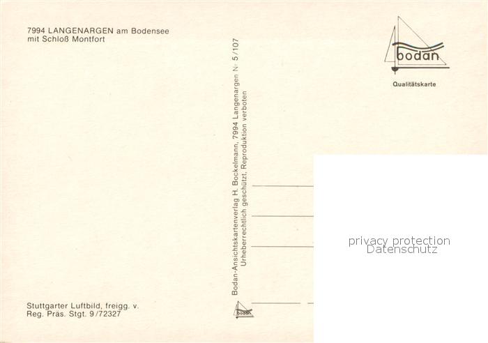 73745849 Langenargen Bodensee Fliegeraufnahme mit Schloss Montfort postalisch nicht gelaufen Erhaltung siehe scans [FriedD77] KatCode: 11110008435030