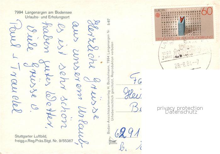 73152720 alte Postkarte Langenargen Bodensee Fliegeraufnahme Schloss Hafen postalisch gelaufen Erhaltung siehe scans [KathaD81] KatCode: 11110008435030