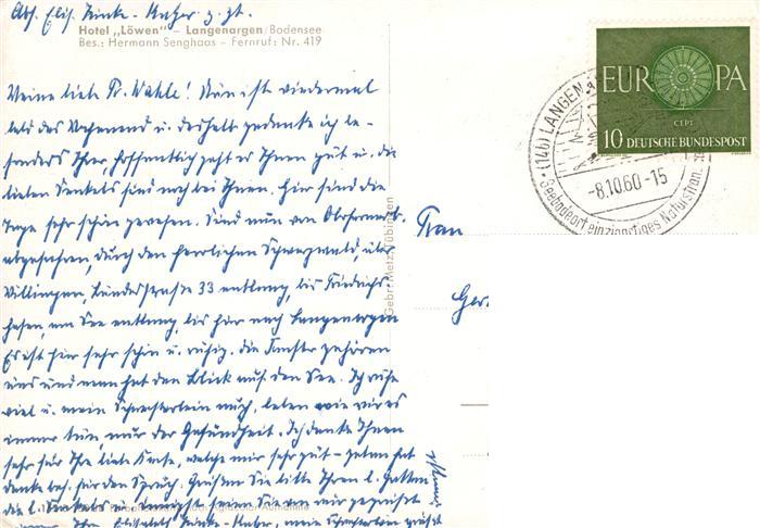 73900317 alte Postkarte Langenargen Bodensee Hotel Loewen Bootsanleger postalisch gelaufen Erhaltung siehe scans [FriedD77] KatCode: 11110008435030