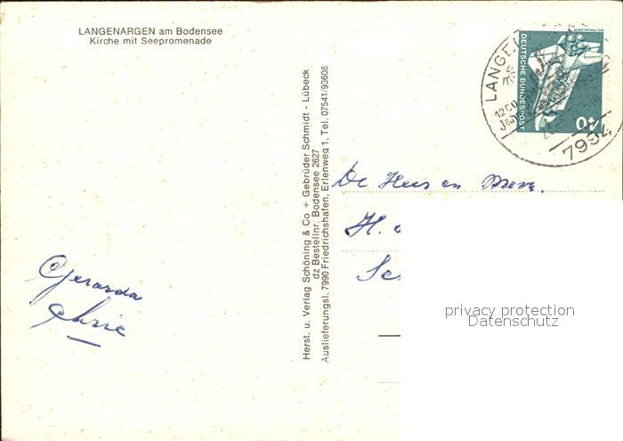 72504257 alte Postkarte Langenargen Bodensee Kirche mit Seepromenade postalisch gelaufen Erhaltung siehe scans KatCode: 11110008435030