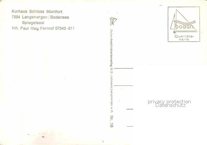 72797246 Langenargen Bodensee Kurhaus Schloss Montfort Spiegelsaal postalisch nicht gelaufen Erhaltung siehe scans [AndreD76] KatCode: 11110008435030