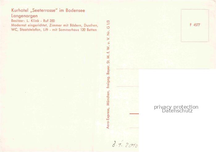 74105158 Langenargen Bodensee Kurhotel Seeterrasse postalisch nicht gelaufen Fliegeraufnahme Erhaltung siehe scans [FriedD77] Fliegeraufnahme Frie Katcode 11110008435030