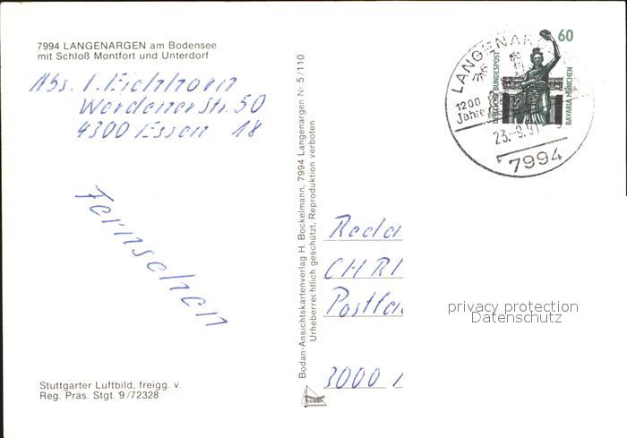72465172 alte Postkarte Langenargen Bodensee mit Schloss Montfort und Unterdorf Fliegeraufnahme postalisch gelaufen Erhaltung siehe scans KatCode: 11110008435030