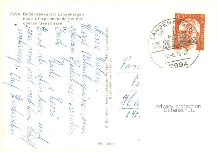 73774838 alte Postkarte Langenargen Bodensee Neue Uferpromenade an der oberen Seestrasse postalisch gelaufen Erhaltung siehe scans [WerneD78] KatCode: 11110008435030