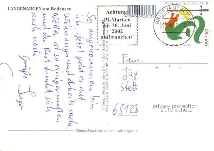 73197732 alte Postkarte Langenargen Bodensee Schloss Montfort Gondelhafen Marktplatz postalisch gelaufen Erhaltung siehe scans [NatalD47] KatCode: 11110008435030