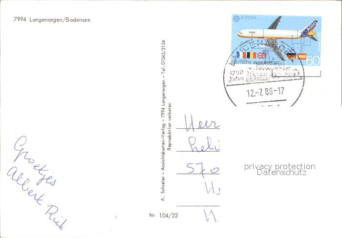 72223832 alte Postkarte Langenargen Bodensee Seeanlage Schloss Montfort Promenade Bootshafen postalisch gelaufen Erhaltung siehe scans KatCode: 11110008435030