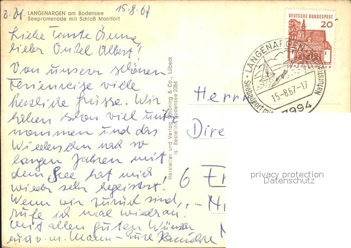 72596313 alte Postkarte Langenargen Bodensee Seepromenade mit Schloss Montfort postalisch gelaufen Erhaltung siehe scans [WerneD78] KatCode: 11110008435030