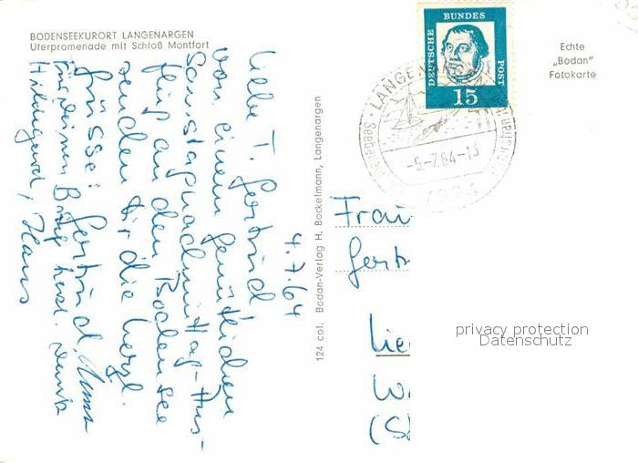 72625686 alte Postkarte Langenargen Bodensee Uferpromenade mit Schloss Montfort postalisch gelaufen Erhaltung siehe scans [WerneD78] KatCode: 11110008435030