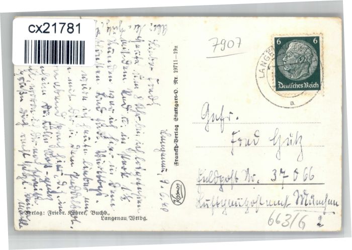 30739629 alte Postkarte Langenau Wuerttemberg chwimmbad postalisch gelaufen KatCode: 11110008425072