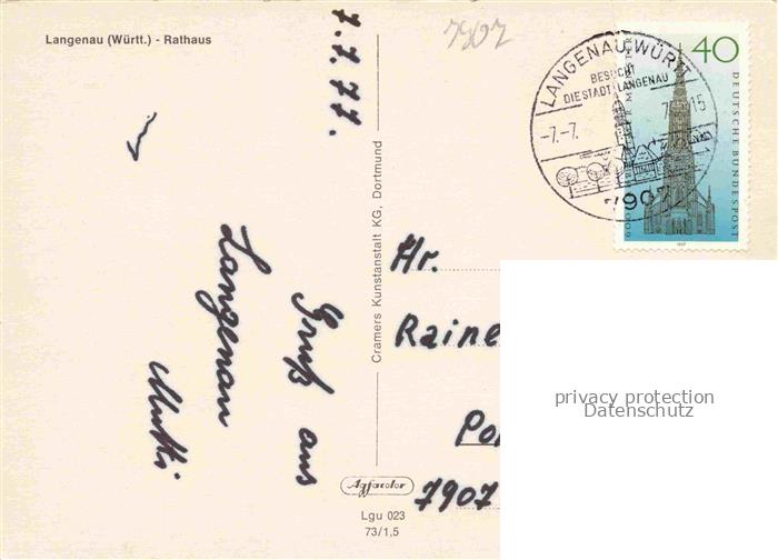 74049868 alte Postkarte Langenau Wuerttemberg Rathaus postalisch gelaufen Erhaltung siehe scans [FriedD77] KatCode: 11110008425072