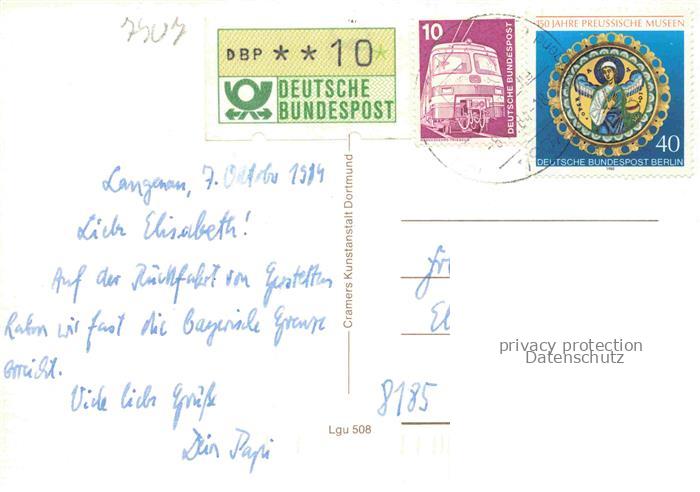 74049909 alte Postkarte Langenau Wuerttemberg Teilansichten Ortszentrum Kirche Hauptstrasse Parkanlagen Historie postalisch gelaufen Erhaltung siehe scans [FriedD77] KatCode: 11110008425072
