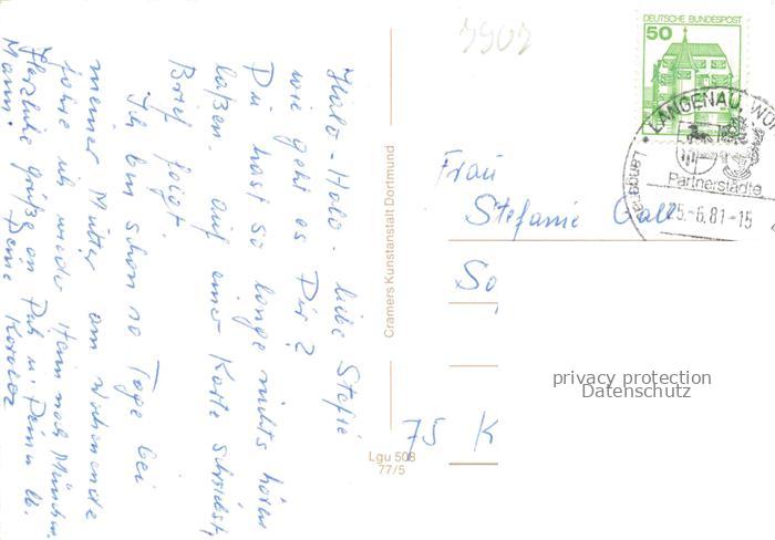 74049874 alte Postkarte Langenau Wuerttemberg Teilansichten Ortszentrum Kirche Parkanlagen Historie postalisch gelaufen Erhaltung siehe scans [FriedD77] KatCode: 11110008425072
