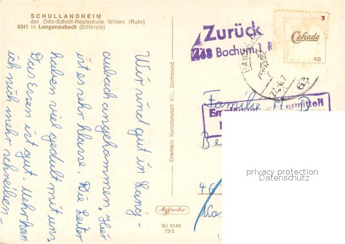 73723173 alte Postkarte Langenaubach Schullandheim der Otto Schott Realschule Witten postalisch gelaufen Erhaltung siehe scans [FriedD77] KatCode: 11110006532011