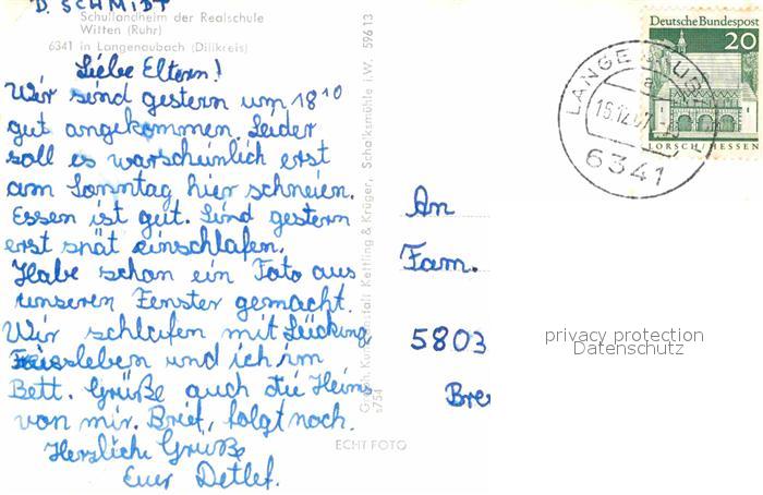 72892425 alte Postkarte Langenaubach Schullandheim Realschule Witten postalisch gelaufen Erhaltung siehe scans [PaolaD17] KatCode: 11110006532011