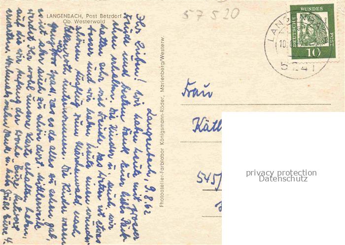 74038079 alte Postkarte Langenbach Kirburg Westerwaldkreis Alter Baum Panorama postalisch gelaufen Erhaltung siehe scans [WerneD78] KatCode: 11110007143253