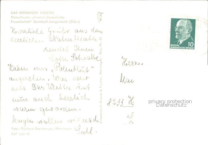72043002 alte Postkarte Langenbach Thueringen Meininger Naturtheater DSF postalisch gelaufen Erhaltung siehe scans KatCode: 11110016069042