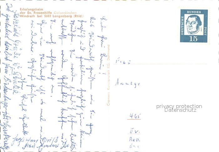 72567665 alte Postkarte Langenberg Rheinland Erholungsheim Evangelische Frauenhilfe Windrath postalisch gelaufen Erhaltung siehe scans [KathaD79] KatCode: 11110005158032