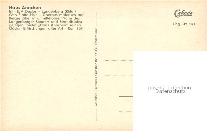 73323186 Langenberg Rheinland Jugendherberge Haus Annchen postalisch nicht gelaufen Erhaltung siehe scans [FriedD77] KatCode: 11110005158032
