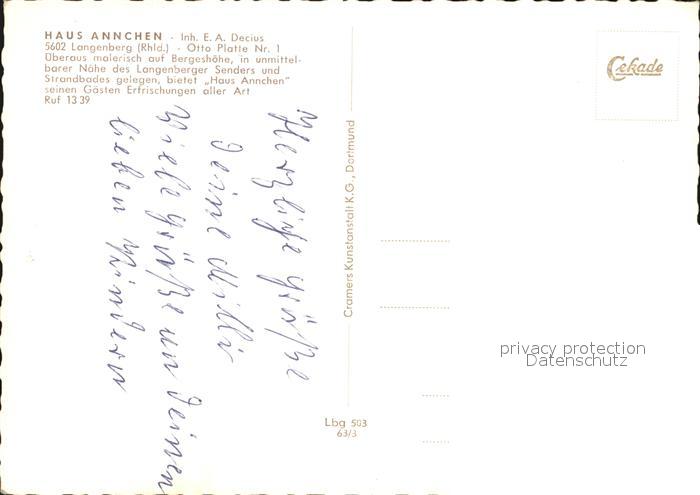 72528477 Langenberg Rheinland Ortsansicht mit Kirche Bismarckturm Sender Klippe Schwimmbad postalisch nicht gelaufen Erhaltung siehe scans KatCode: 11110005158032