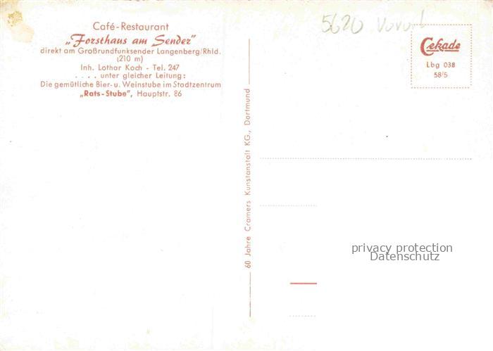 74100657 Langenberg Rheinland VELBERT NRW Cafe Restaurant Forsthaus am Sender Freiterrasse postalisch nicht gelaufen Erhaltung siehe scans [WerneD78] KatCode: 11110005158032